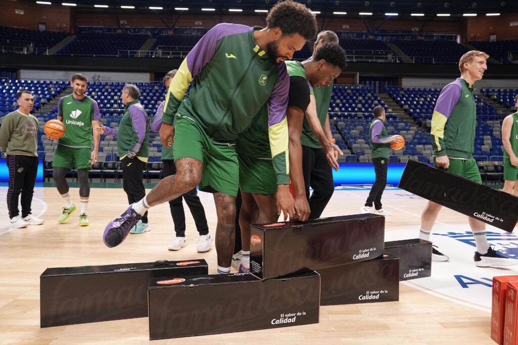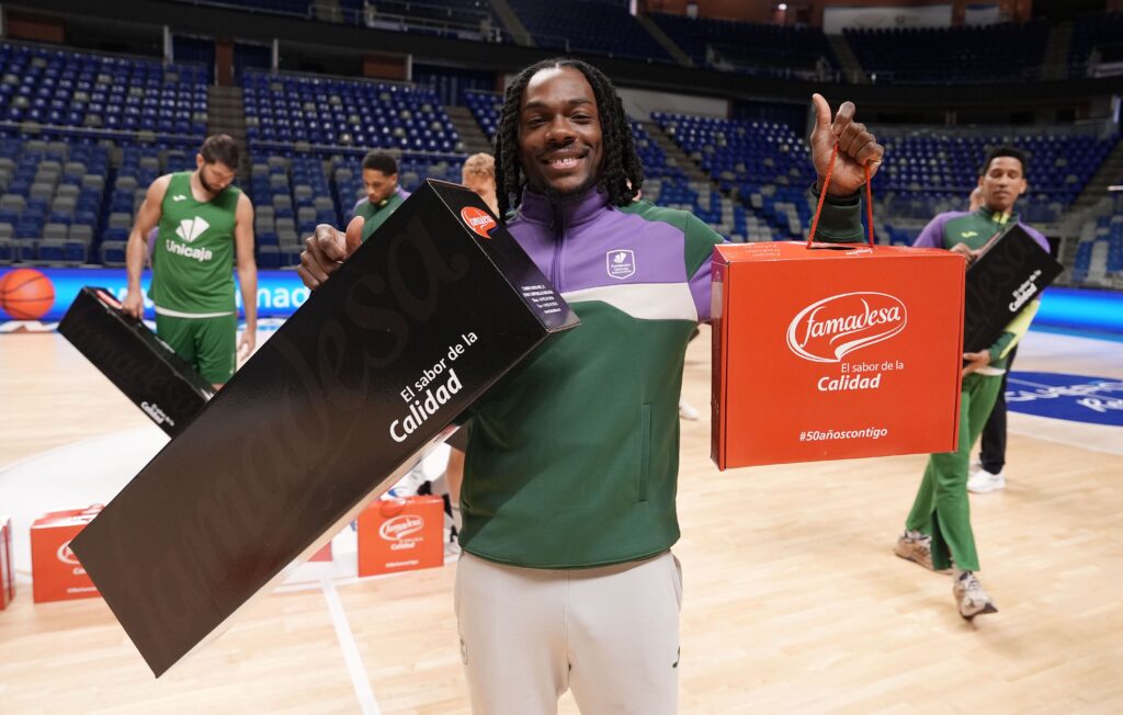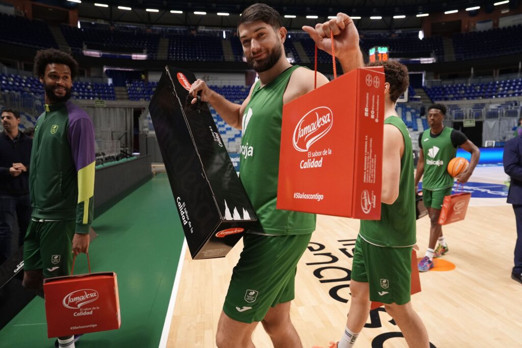 Famadesa ha entregado un jamón y un lote de productos cárnicos con sabor a Málaga a todos los integrantes de la plantilla del Unicaja. Igualmente, ha tenido un detalle especial con sus jugadores musulmanes, que no pueden comer productos derivados del cerdo y les ha entregado un paquete especial para que se vayan a casa también con un delicioso obsequio. Además del equipo, Famadesa también va a entregar el regalo navideño a todos los empleados de oficinas del Club.