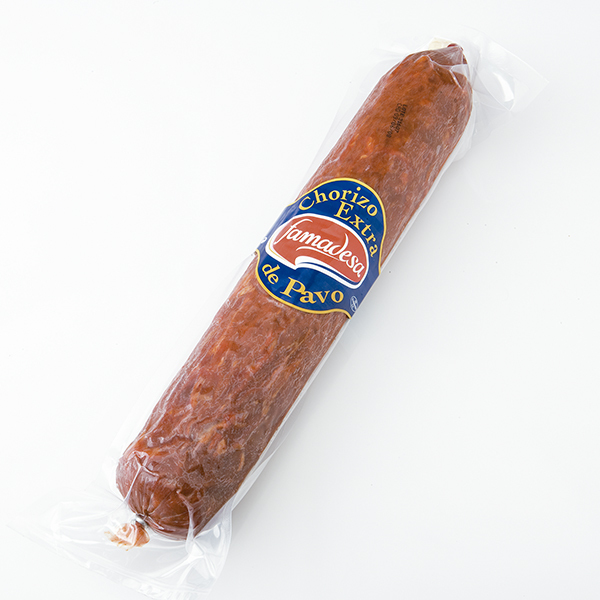Piezas de 1,4 Kg. aproximadamente, embutidas en tripa artificial no comestible y envasadas al vacío.