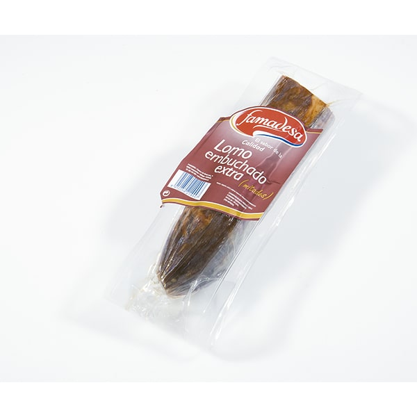 Piezas de cinta de lomo, embutidas en tripa artificial no comestible y envasada al vacío.