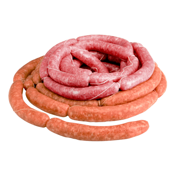 Cajas de cartón divididas en dos secciones. En cada una de ellas las longanizas van envueltas en una bolsa de plástico.