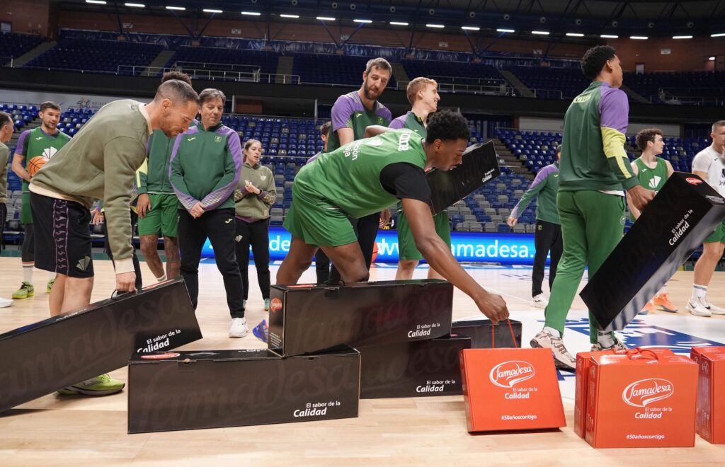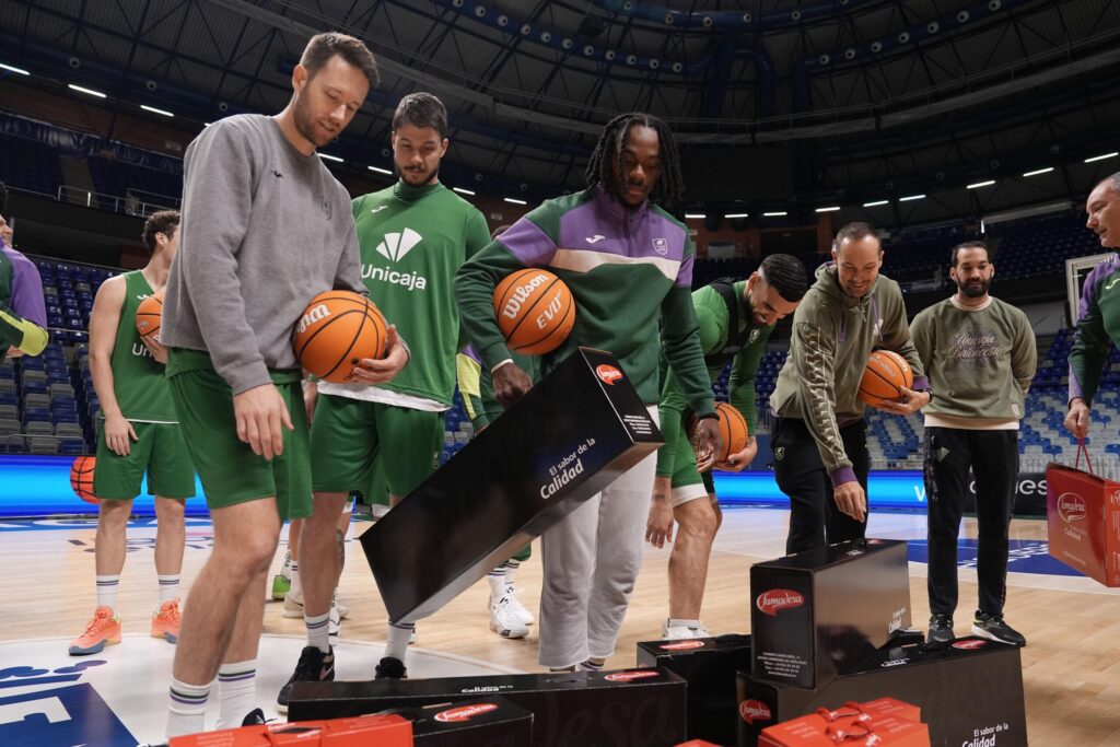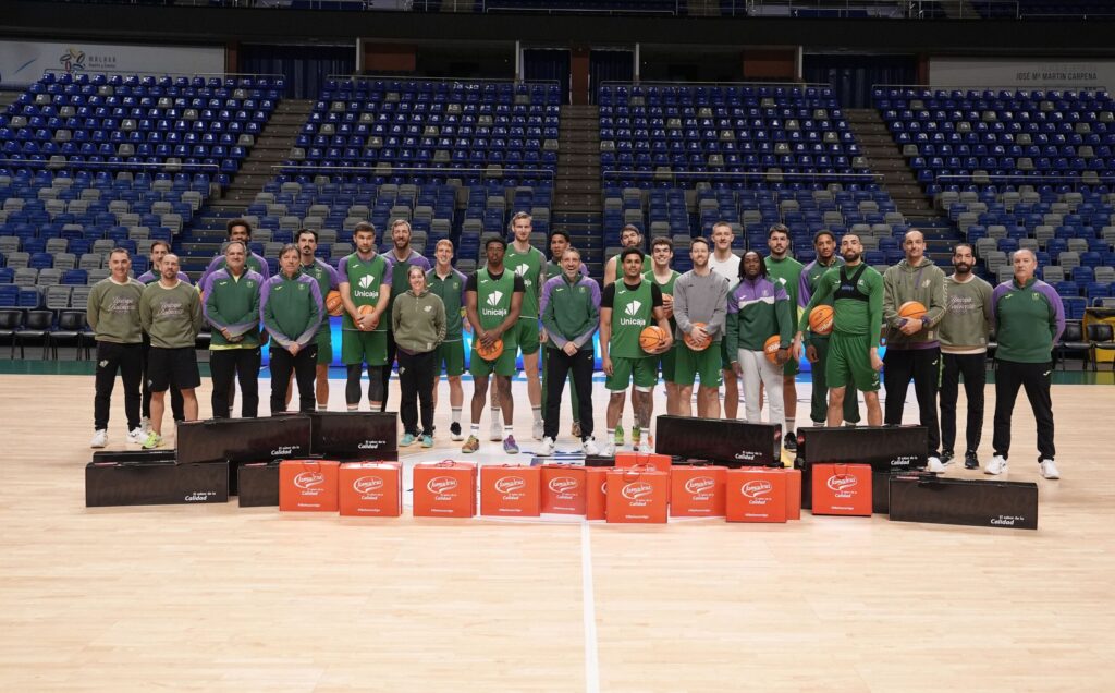 Famadesa ha entregado un jamón y un lote de productos cárnicos con sabor a Málaga a todos los integrantes de la plantilla del Unicaja. Igualmente, ha tenido un detalle especial con sus jugadores musulmanes, que no pueden comer productos derivados del cerdo y les ha entregado un paquete especial para que se vayan a casa también con un delicioso obsequio. Además del equipo, Famadesa también va a entregar el regalo navideño a todos los empleados de oficinas del Club.