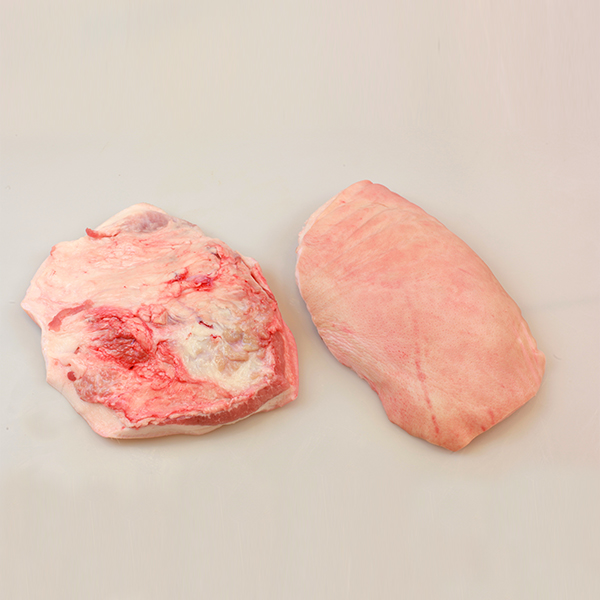Tejido graso subcutáneo de la región anatómica que recubre la mandíbula inferior del cerdo, entre la garganta y el pecho, que incluye parte la musculatura superficial y profunda del cuello y que se presenta con corteza.
