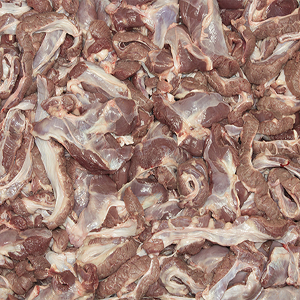 Magro obtenido de los pilares diafragmáticos y del recorte del diafragma de la pared costal que se presenta con o sin membrana conjuntiva (según especificación) con una proporción de magro/grasa de 60/40 aproximadamente.